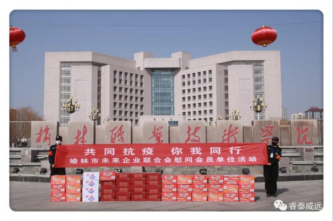 2月19日,在榆林市工商聯(lián)副主席張修前率領榆林市未來企業(yè)聯(lián)合會黨支部書記、愛心公益主任徐遼飛,愛心公益中心副主任秦海軍,副監(jiān)事曹強等領導,為會員單位威遠公司所派駐職業(yè)技術學院的保安員送來了方便面、火腿腸、礦泉水等價值5000余元的暖心慰問品,威遠安保集團副總經(jīng)理陳銘、人防事業(yè)部經(jīng)理劉元利及相關保安員參加了此次活動。