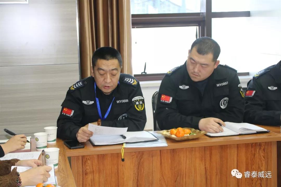 天地春暉近,日月開(kāi)新元。為推動(dòng)各項(xiàng)工作任務(wù)提速上檔,1月11日下午,威遠(yuǎn)保安公司召開(kāi)“安全防范”2020年開(kāi)門紅動(dòng)員部署大會(huì),公司各部門負(fù)責(zé)人、各分隊(duì)長(zhǎng)及行政人員參加了會(huì)議。