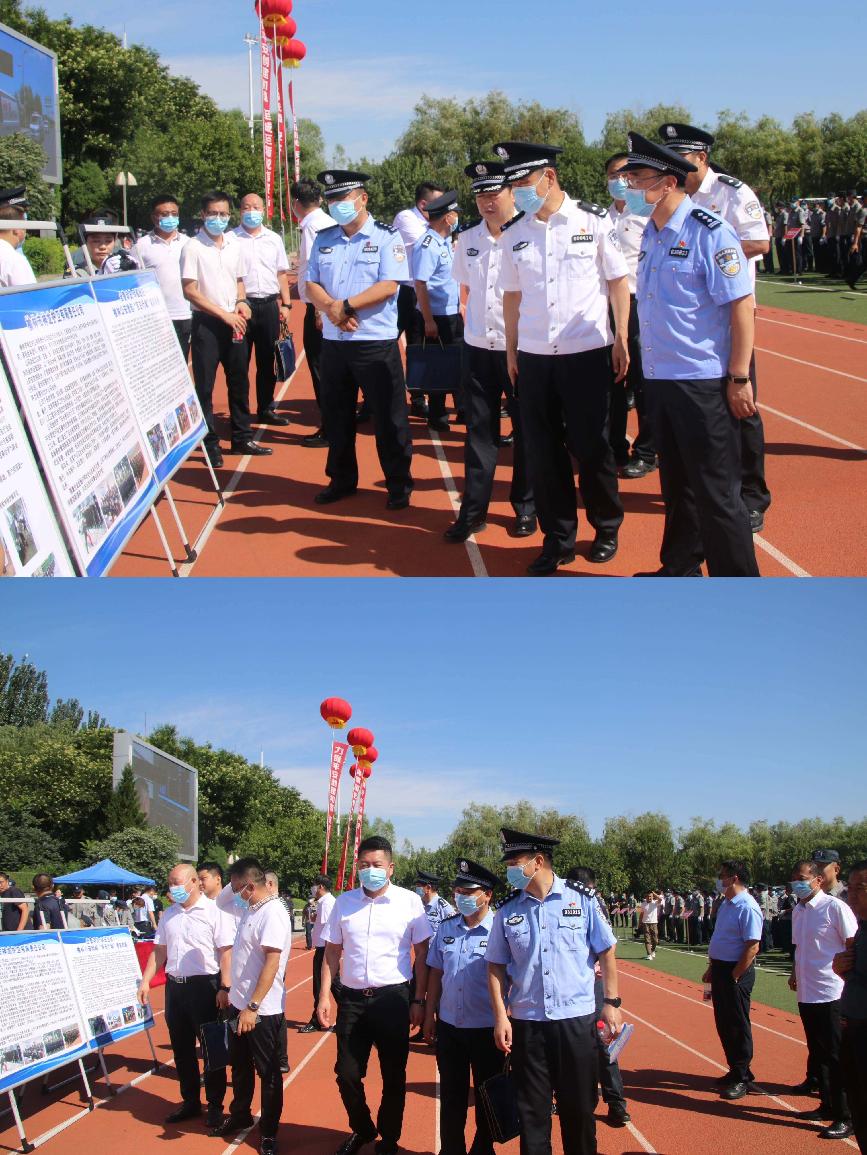 活動現(xiàn)場氣氛熱烈,保安隊員代表方陣整齊著裝、列隊肅立,集團(tuán)行政團(tuán)隊向往來群眾發(fā)放宣傳資料。