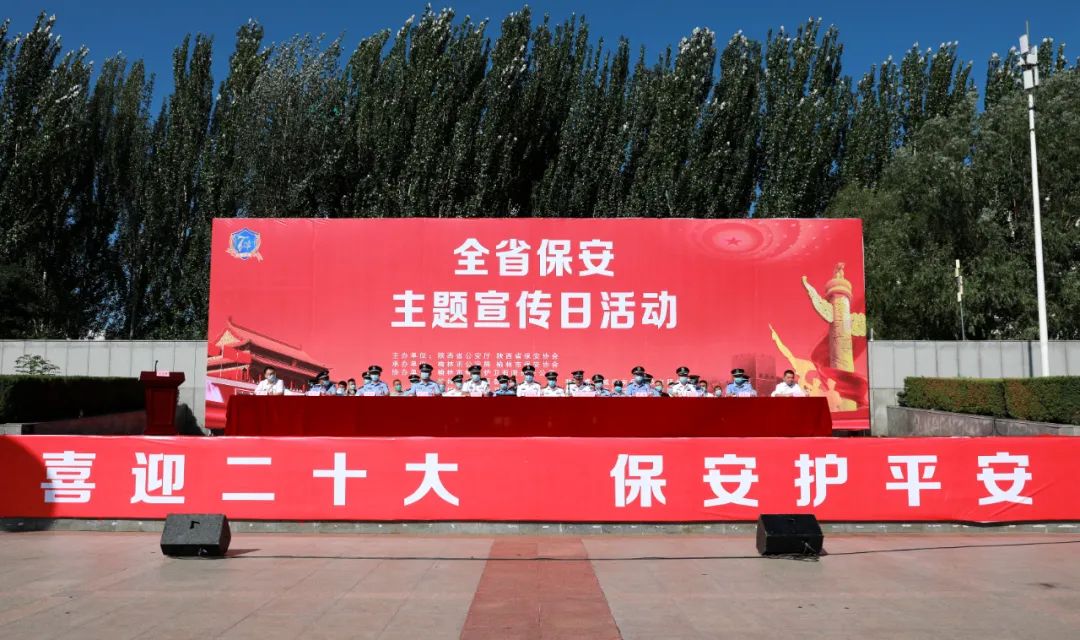為進(jìn)一步展示陜西保安隊伍形象、打造行業(yè)品牌、增進(jìn)保安隊伍凝聚力,7月24日上午,由陜西省公安廳、陜西省保安協(xié)會主辦,榆林市公安局、榆林市保安協(xié)會承辦,以“喜迎二十大、保安護(hù)平安”為主題的全省保安行業(yè)年度主題宣傳日活動在榆林市世紀(jì)廣場舉行,陜西省公安廳治安局副局長胡全祥參加活動并講話,榆林市公安局黨委委員、正縣級偵察員楊利軍主持活動。陜西省公安廳治安局相關(guān)業(yè)務(wù)負(fù)責(zé)人、陜西省保安協(xié)會相關(guān)負(fù)責(zé)人,全省各市(區(qū))公安局治安支隊支隊長、保安監(jiān)管負(fù)責(zé)人,全省設(shè)區(qū)市保安協(xié)會代表,全省保安武裝押運(yùn)企業(yè)法人代表,以及400余名保安員代表參加了活動。我集團(tuán)作為協(xié)辦單位參加了此次活動。